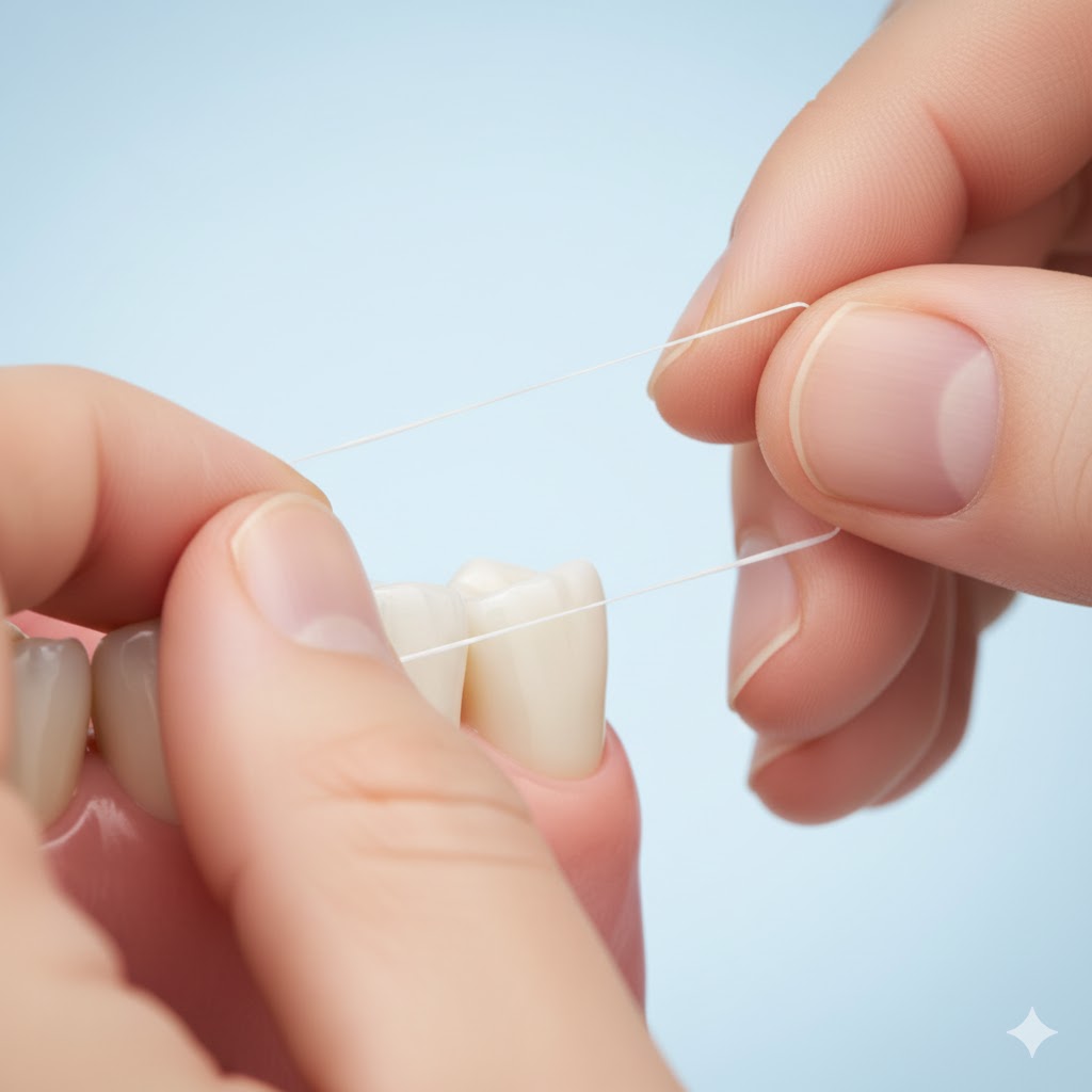 - 1단계: 치실로 치아 사이 세정